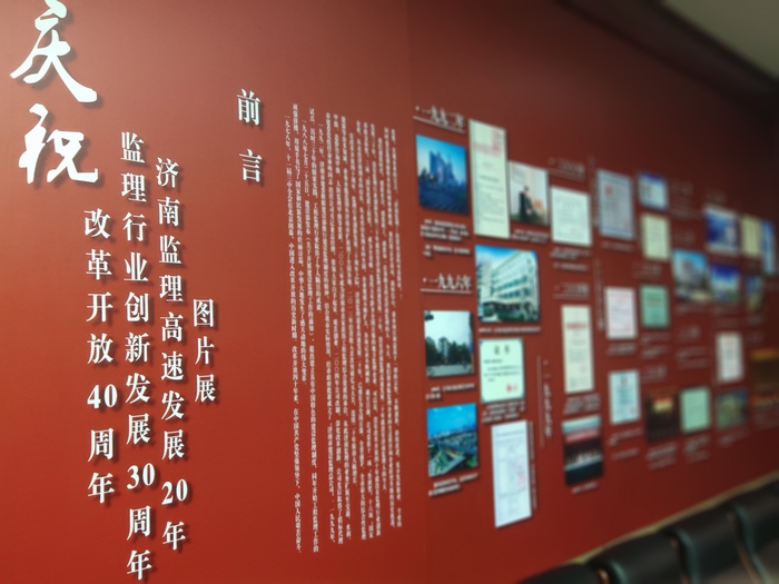 近日,以“庆祝改革开放40周年、建设监理创新发展30周年、济南监理高速发展20年”为主题的图片展在济南监理会议室正在展出,以年代为轴,事记为线,串起了一幅从1992年至今艰苦奋斗、高速发展的宏伟画卷。