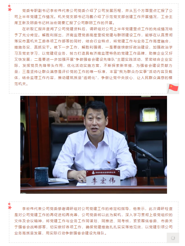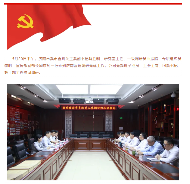 济南市委市直机关工委调研组莅临济南监理指导党建工作