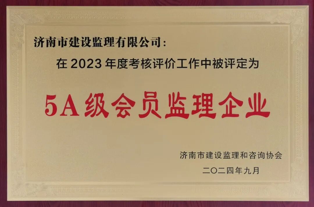 喜报!济南监理荣获中国工程监理AAA级信用企业及济南市5A级会员监理企业