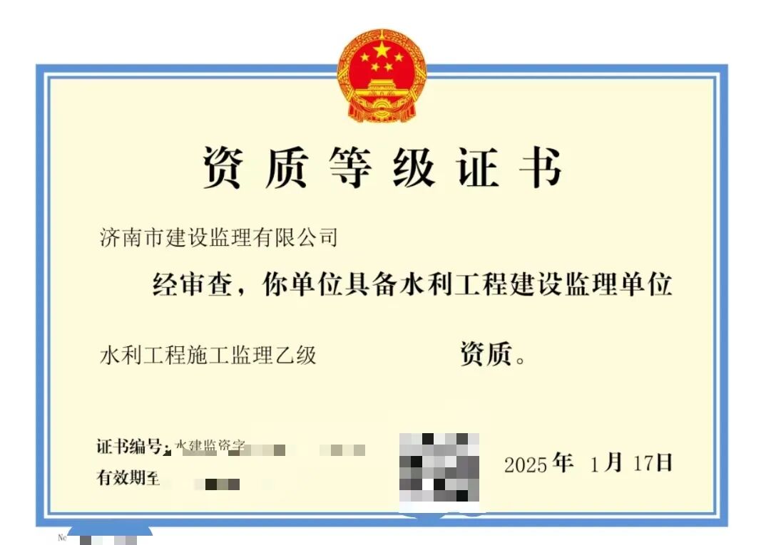 热烈祝贺济南监理取得两项水利工程建设监理资质